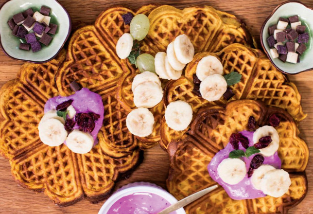 Másik nagy favorit nálunk a gofri minden mennyiségben és mindféle házi jóval megpakolva. Egyik évben pont gyermeknap alkalmából elkészítettük a tavasz- vagy már inkább nyárváró gofrikat, amelyeknél igazi kis kuktaként segítettek a fiúk. Mellé ínycsiklandóan finom házi Nutellát tálaltunk, a végeredmény pedig fenséges lett.